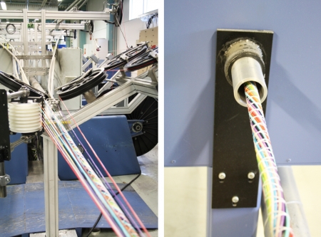 (Kuvassa yllä) 864-kuitusen kaapelin valmistusta